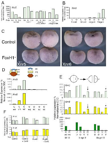 | blastopore bottle cell central vegetal yolk mass dorsal embryo endoderm eye intersomitic region otic vesicle vegetal vegetal endoderm vegetal yolk mass whole organism |