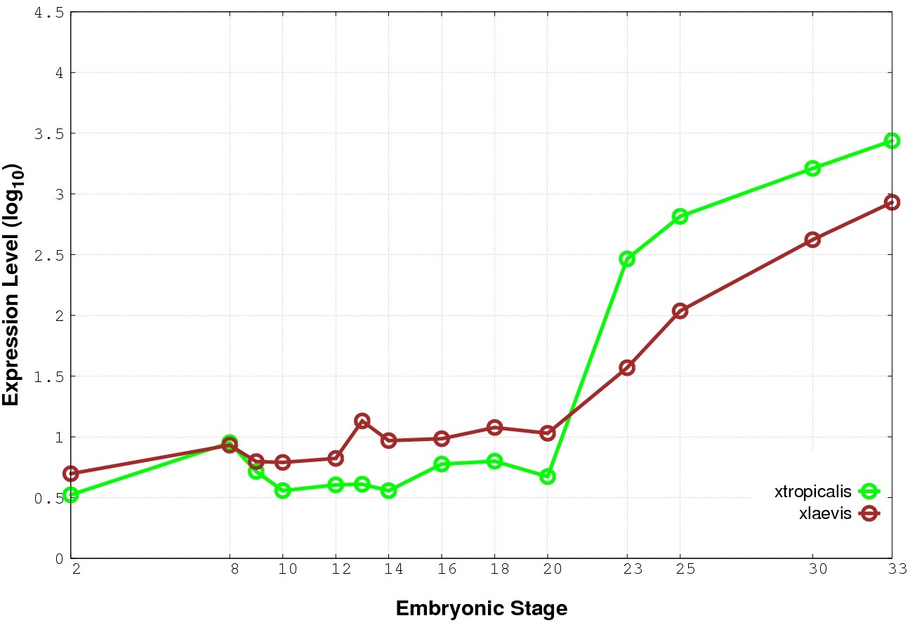 | RNA-Seq and EST Transcriptome profiles | ???displayGene.tropicalis??? | ???displayGene.laevis???.L | ???displayGene.laevis???.S |