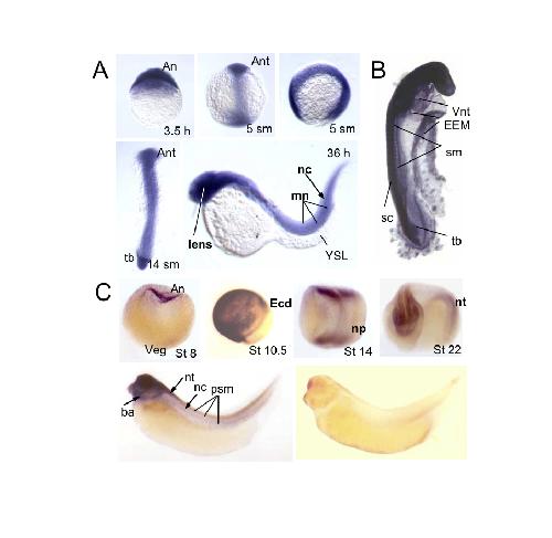 unfertilized egg stage Kim, et al. 2002 | NF stage 8 Ruzov, et al. 2009 | NF stage 14 Ruzov, et al. 2009 | NF stage 8 to NF stage 37 and 38 Ruzov, et al. 2009 | NF stage 37 and 38 Ruzov, et al. 2009 | |