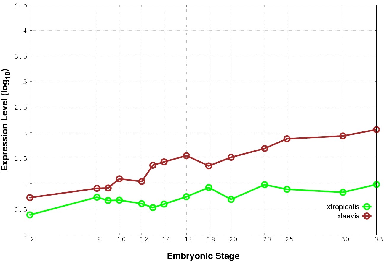 | RNA-Seq and EST Transcriptome profiles | ???displayGene.tropicalis??? | ???displayGene.laevis???.L | ???displayGene.laevis???.S |