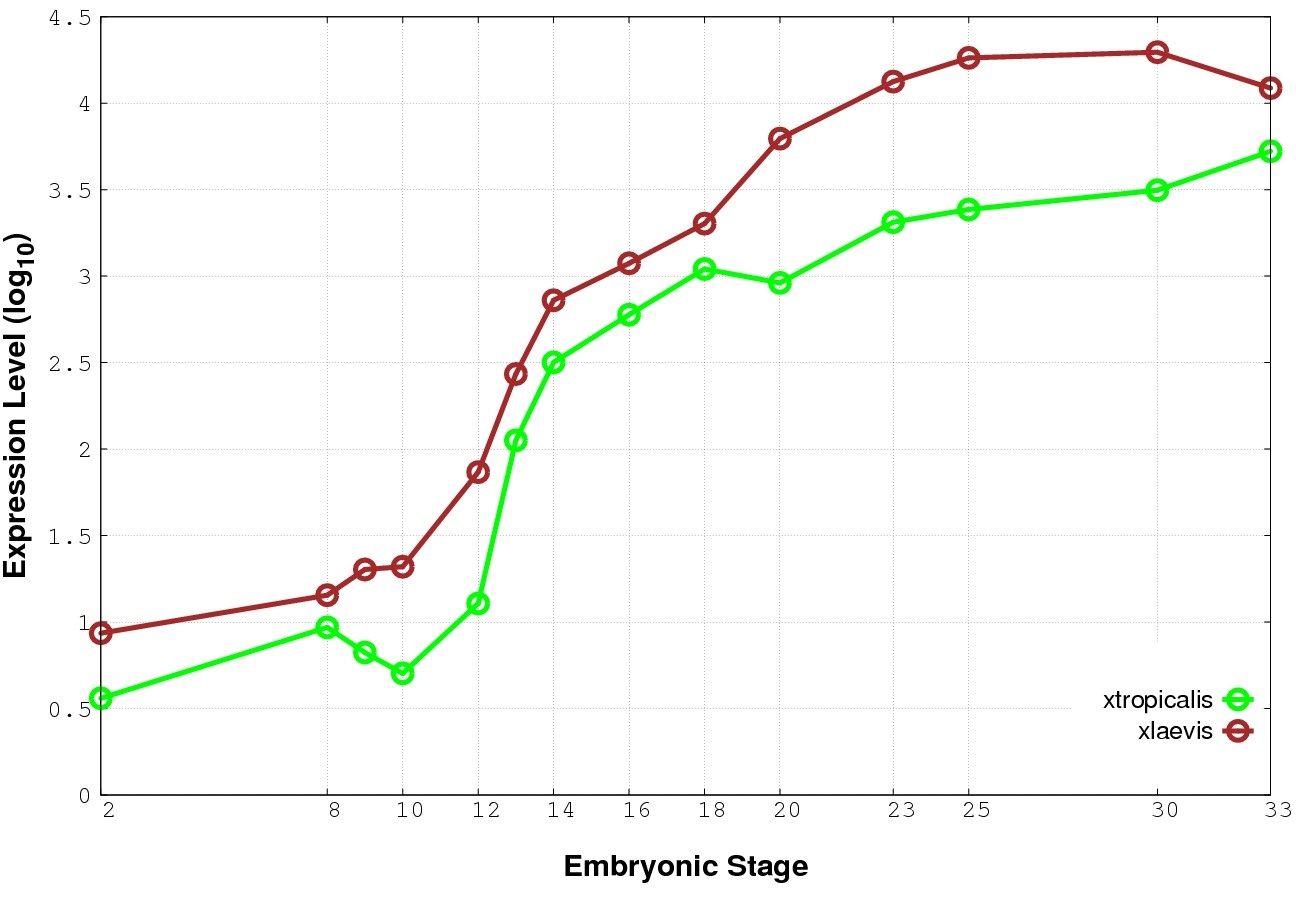 | RNA-Seq and EST Transcriptome profiles | ???displayGene.tropicalis??? | ???displayGene.laevis???.L | ???displayGene.laevis???.S |