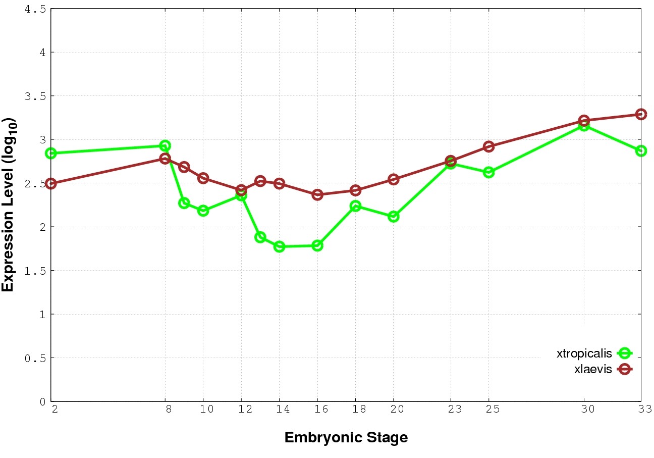 RNA-Seq and EST Transcriptome profiles ???displayGene.tropicalis??? ???displayGene.laevis???.L ???displayGene.laevis???.S