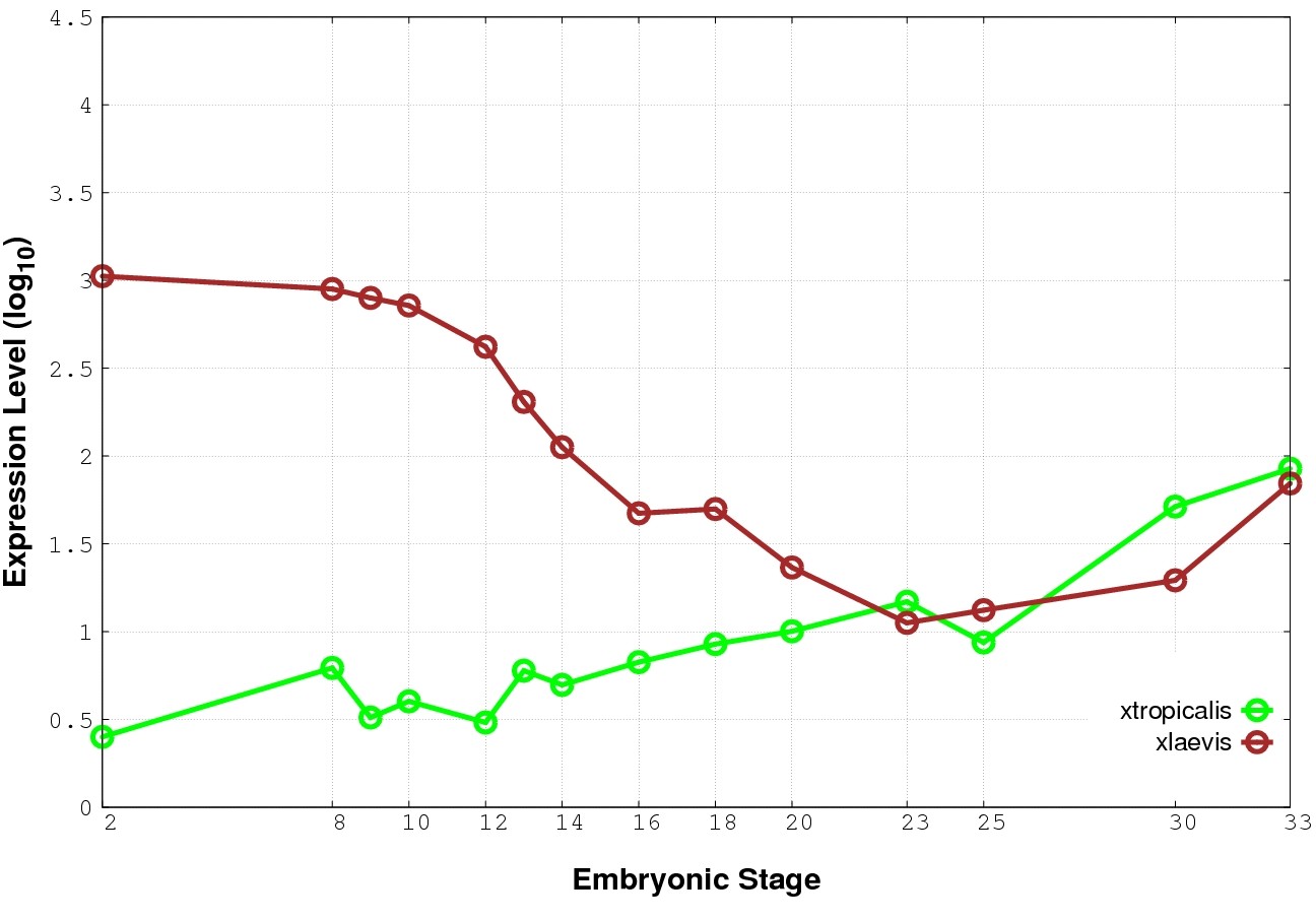 | RNA-Seq and EST Transcriptome profiles | ???displayGene.tropicalis??? | ???displayGene.laevis???.L | ???displayGene.laevis???.S |