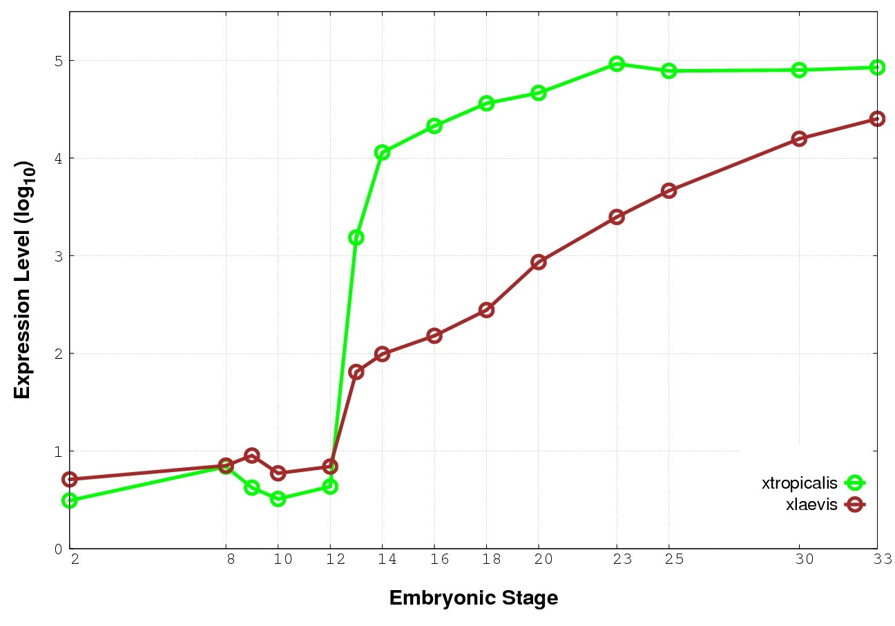 | RNA-Seq and EST Transcriptome profiles | ???displayGene.tropicalis??? | ???displayGene.laevis???.L | ???displayGene.laevis???.S |
