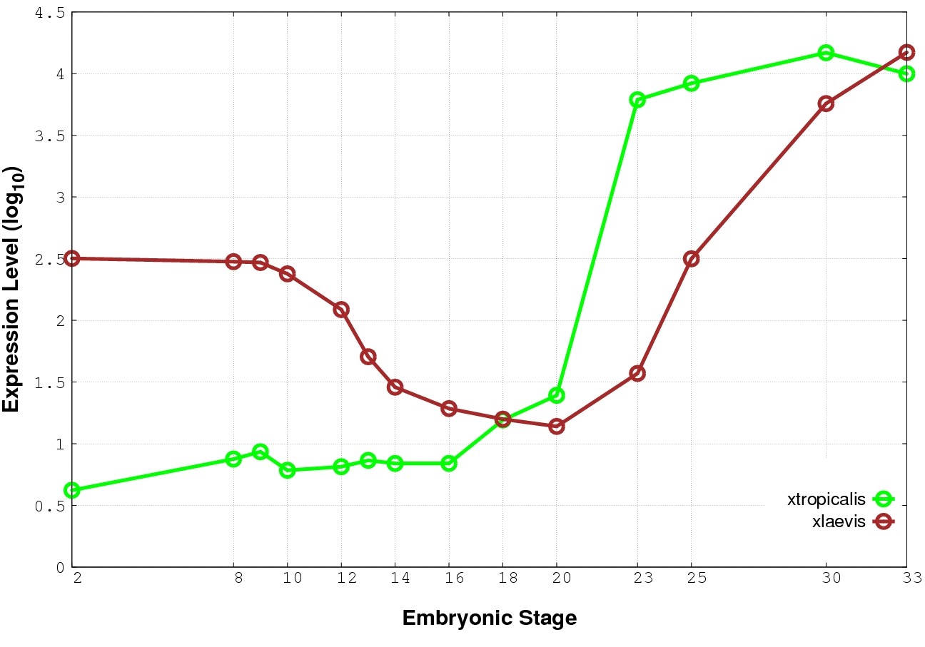 | RNA-Seq and EST Transcriptome profiles | ???displayGene.tropicalis??? | ???displayGene.laevis???.L | ???displayGene.laevis???.S |