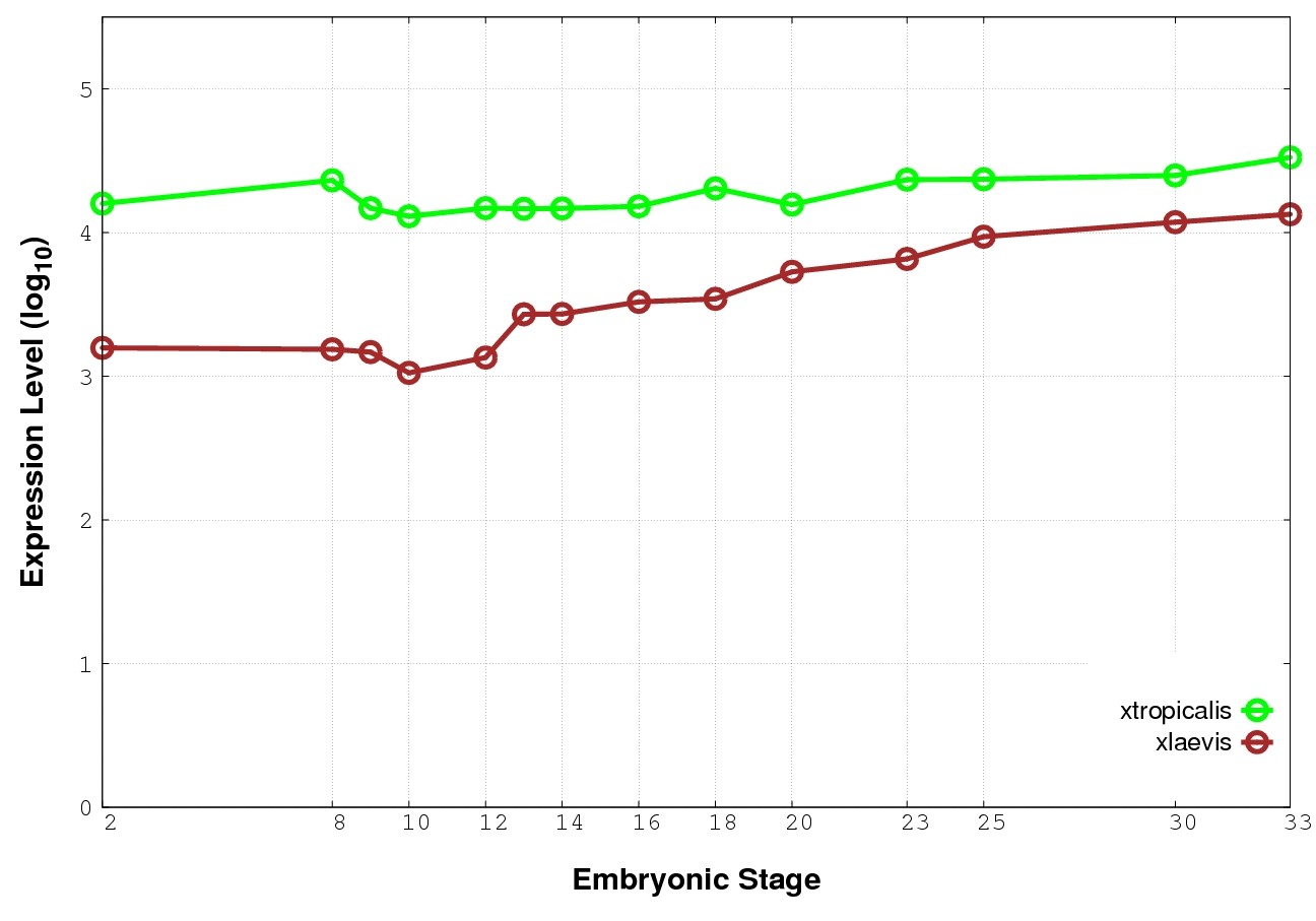 | RNA-Seq and EST Transcriptome profiles | ???displayGene.tropicalis??? | ???displayGene.laevis???.L | ???displayGene.laevis???.S |
