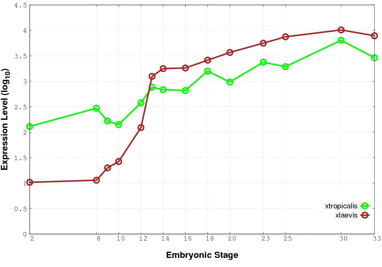 | RNA-Seq and EST Transcriptome profiles | ???displayGene.tropicalis??? | ???displayGene.laevis???.L | ???displayGene.laevis???.S |