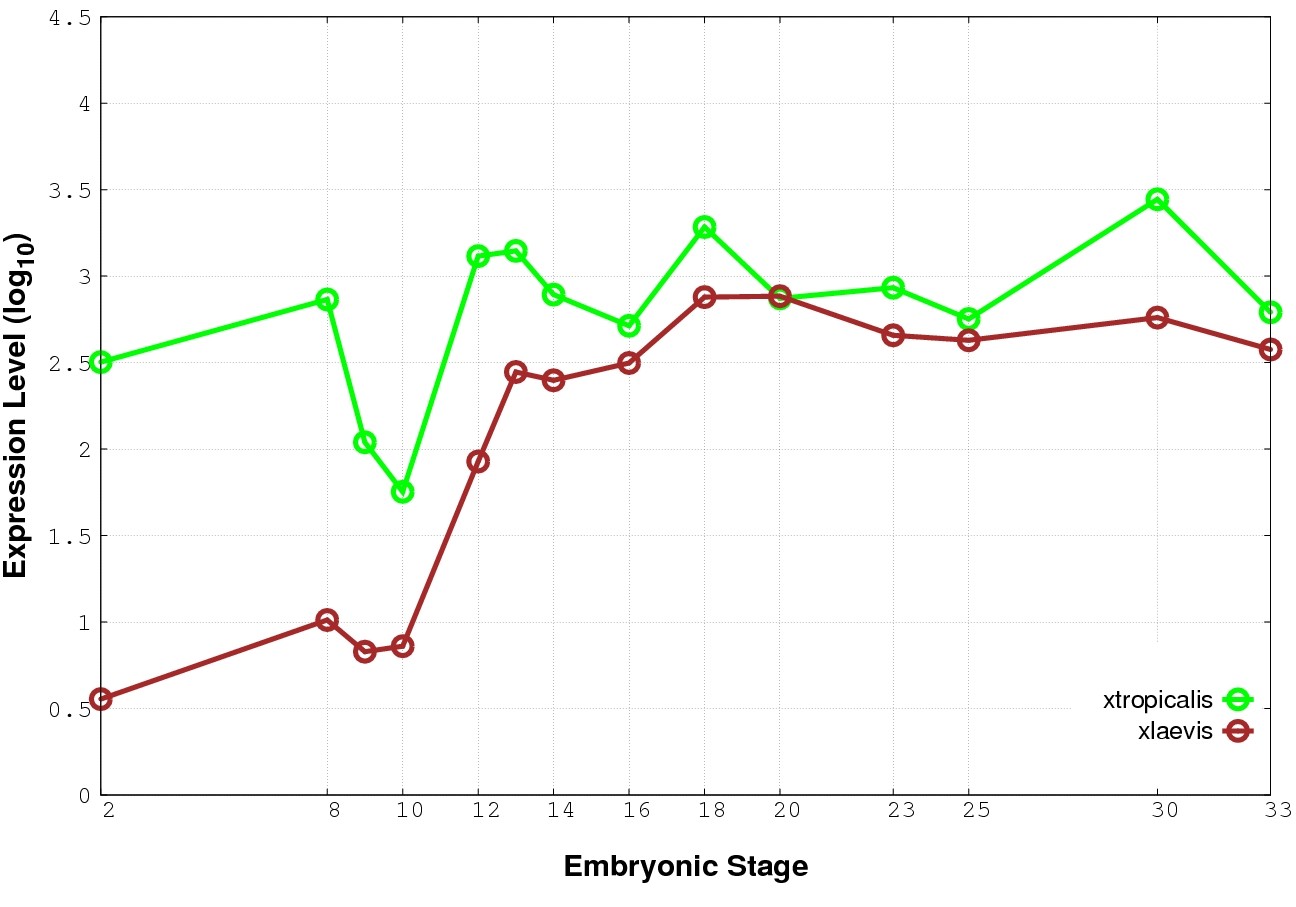 | RNA-Seq and EST Transcriptome profiles | ???displayGene.tropicalis??? | ???displayGene.laevis???.L | ???displayGene.laevis???.S |