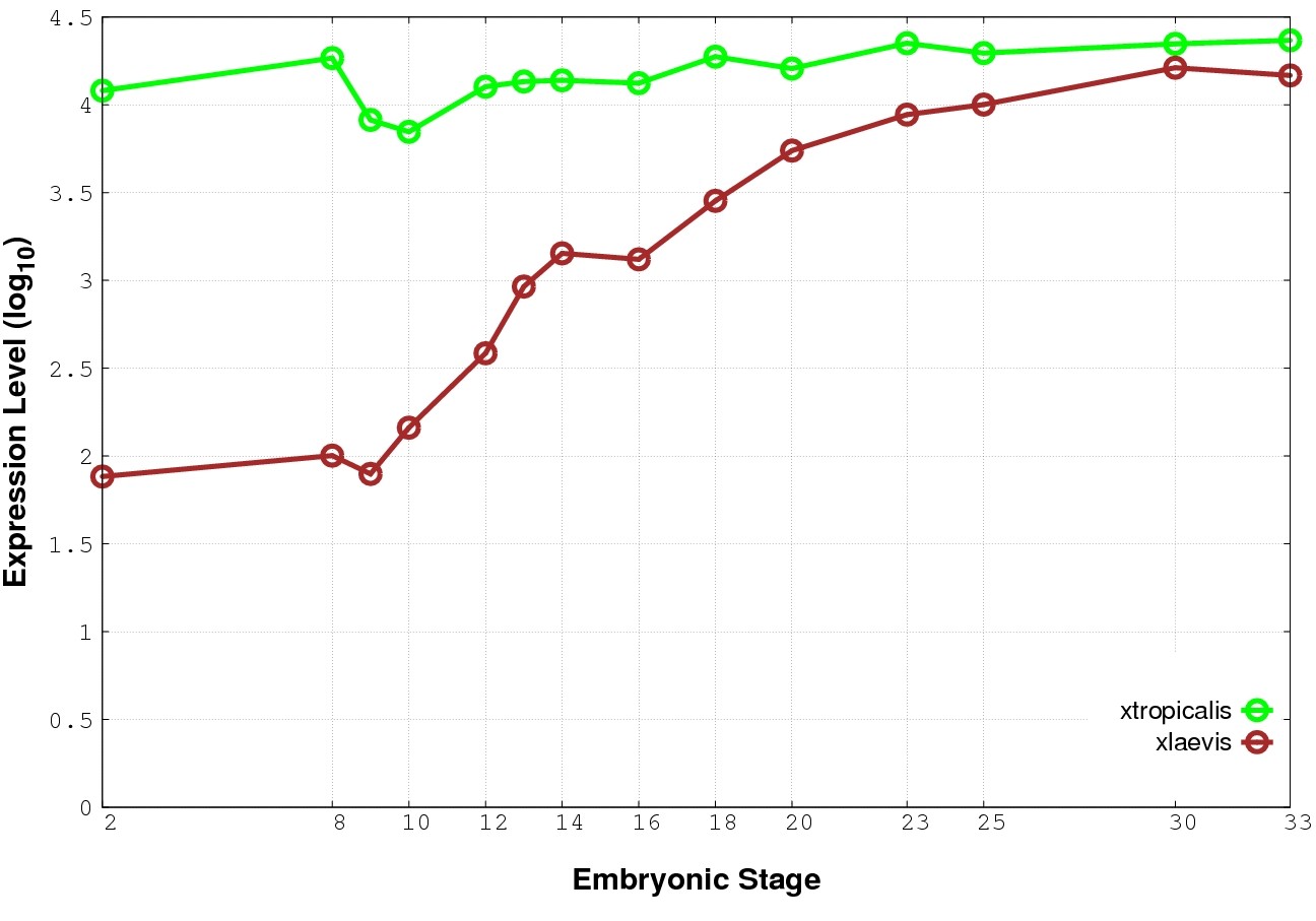 | RNA-Seq and EST Transcriptome profiles | ???displayGene.tropicalis??? | ???displayGene.laevis???.L | ???displayGene.laevis???.S |