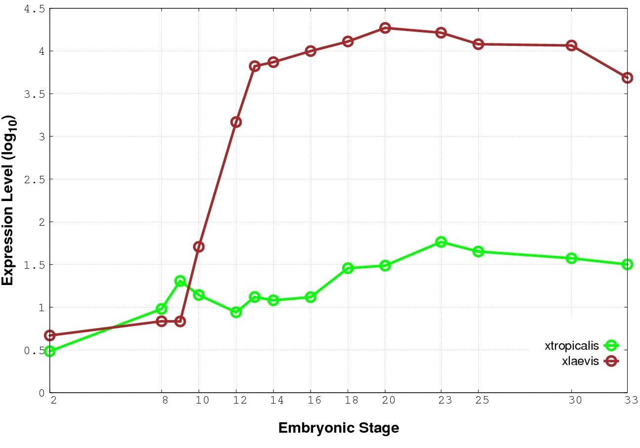 | RNA-Seq and EST Transcriptome profiles | ???displayGene.tropicalis??? | ???displayGene.laevis???.L | ???displayGene.laevis???.S |