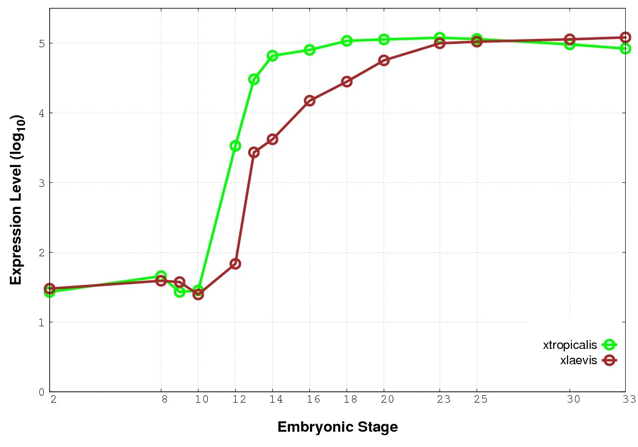 | RNA-Seq and EST Transcriptome profiles | ???displayGene.tropicalis??? | ???displayGene.laevis???.L | ???displayGene.laevis???.S |