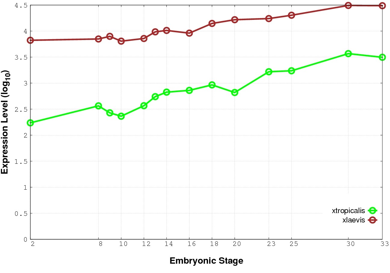 | RNA-Seq and EST Transcriptome profiles | ???displayGene.tropicalis??? | ???displayGene.laevis???.L | ???displayGene.laevis???.S |