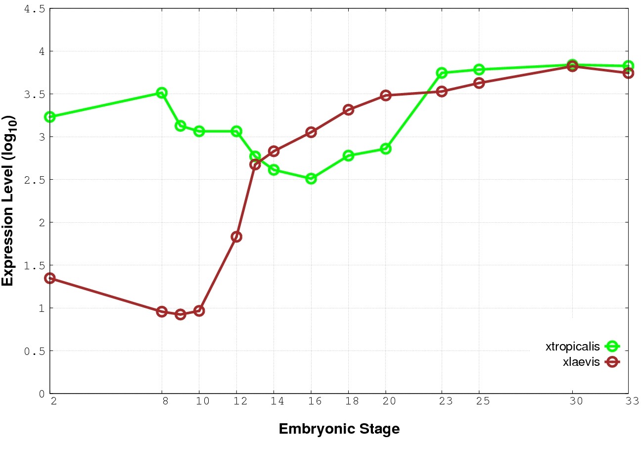 | RNA-Seq and EST Transcriptome profiles | ???displayGene.tropicalis??? | ???displayGene.laevis???.L | ???displayGene.laevis???.S |