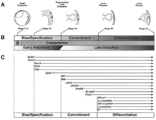 | ectoderm eye head lens lens fiber cell mass lens placode photoreceptor layer retina retinal neural layer retinal outer nuclear layer sensorial layer whole organism |