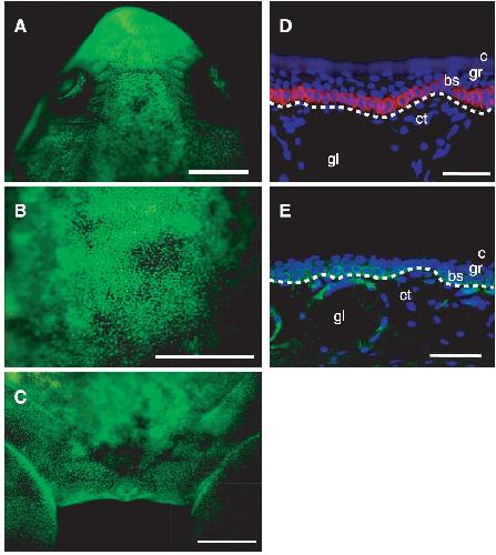 | apical epithelial cap basal lamina blastema bone tissue brain epidermis limb regenerating limb skin whole organism |