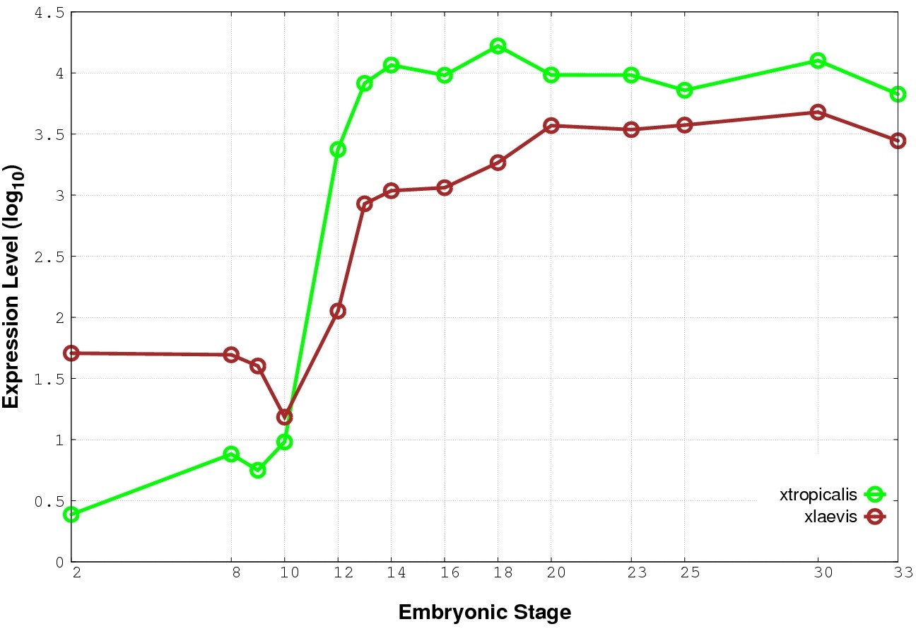 | RNA-Seq and EST Transcriptome profiles | ???displayGene.tropicalis??? | ???displayGene.laevis???.L | ???displayGene.laevis???.S |