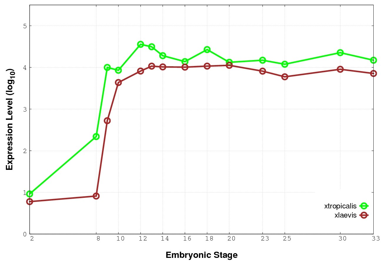 | RNA-Seq and EST Transcriptome profiles | ???displayGene.tropicalis??? | ???displayGene.laevis???.L | ???displayGene.laevis???.S |