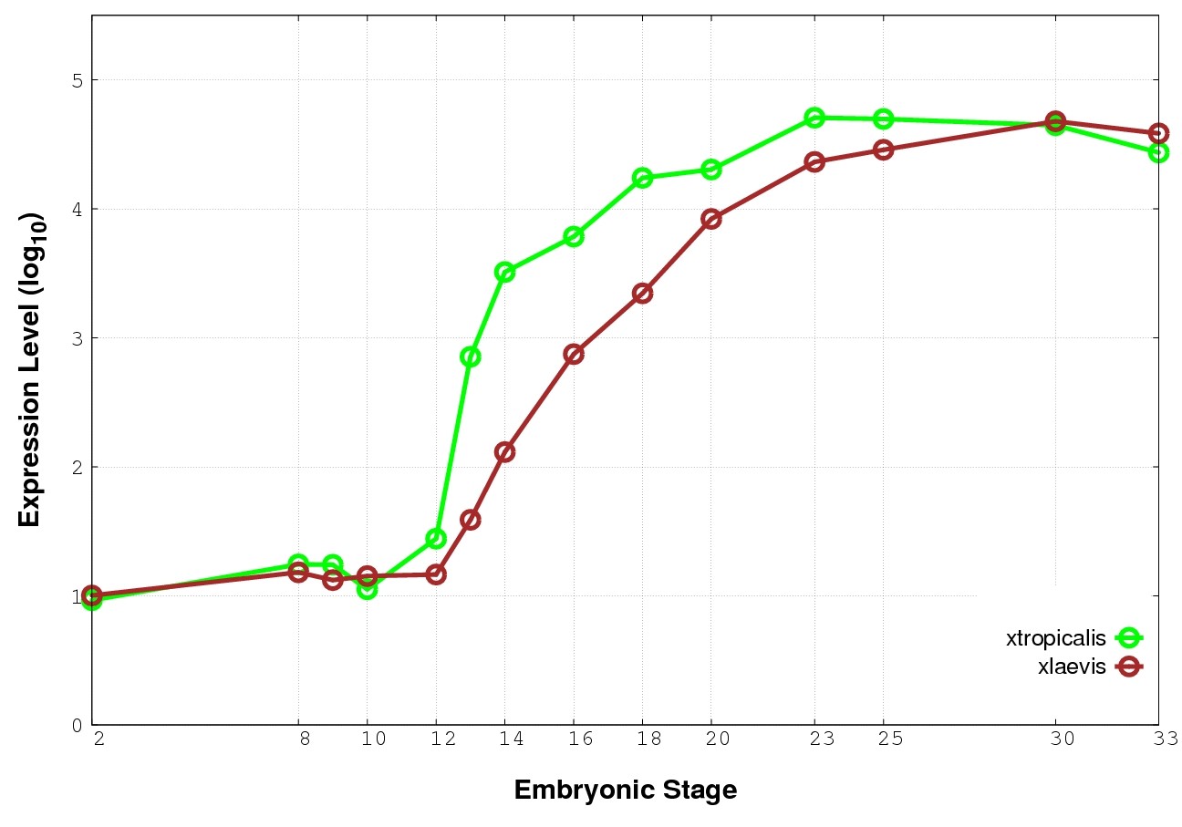 | RNA-Seq and EST Transcriptome profiles | ???displayGene.tropicalis??? | ???displayGene.laevis???.L | ???displayGene.laevis???.S |