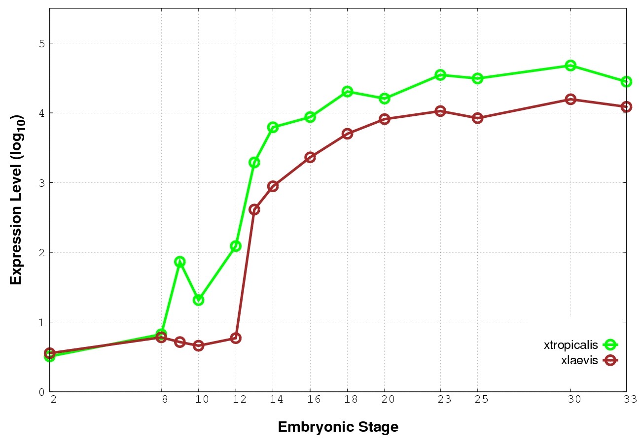 | RNA-Seq and EST Transcriptome profiles | ???displayGene.tropicalis??? | ???displayGene.laevis???.L | ???displayGene.laevis???.S |