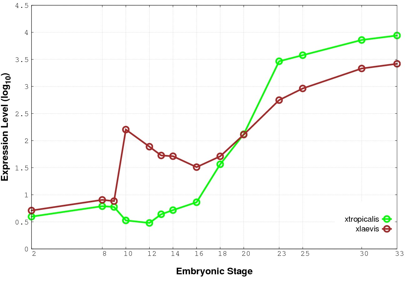 | RNA-Seq and EST Transcriptome profiles | ???displayGene.tropicalis??? | ???displayGene.laevis???.L | ???displayGene.laevis???.S |