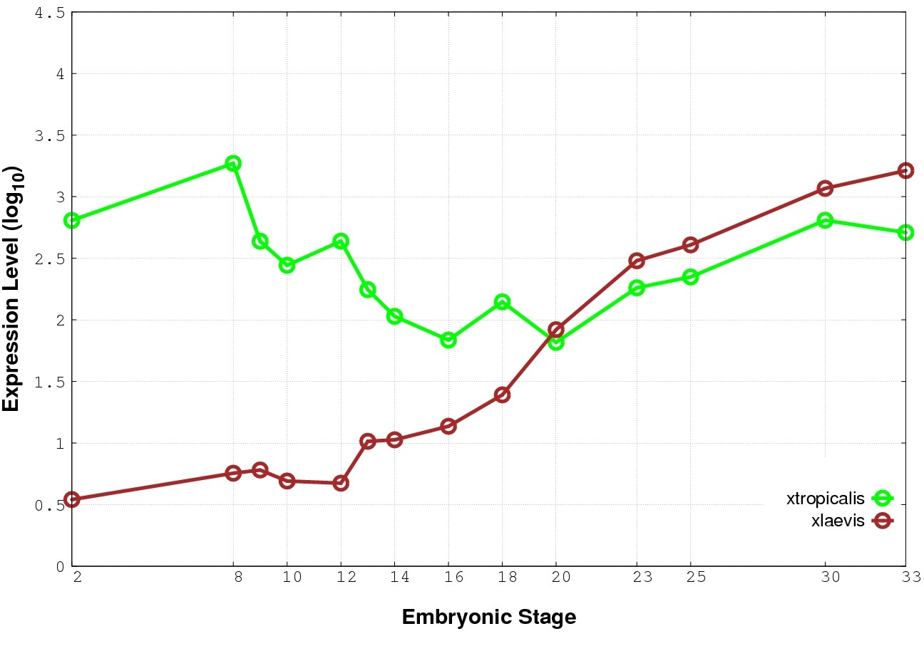 | RNA-Seq and EST Transcriptome profiles | ???displayGene.tropicalis??? | ???displayGene.laevis???.L | ???displayGene.laevis???.S |