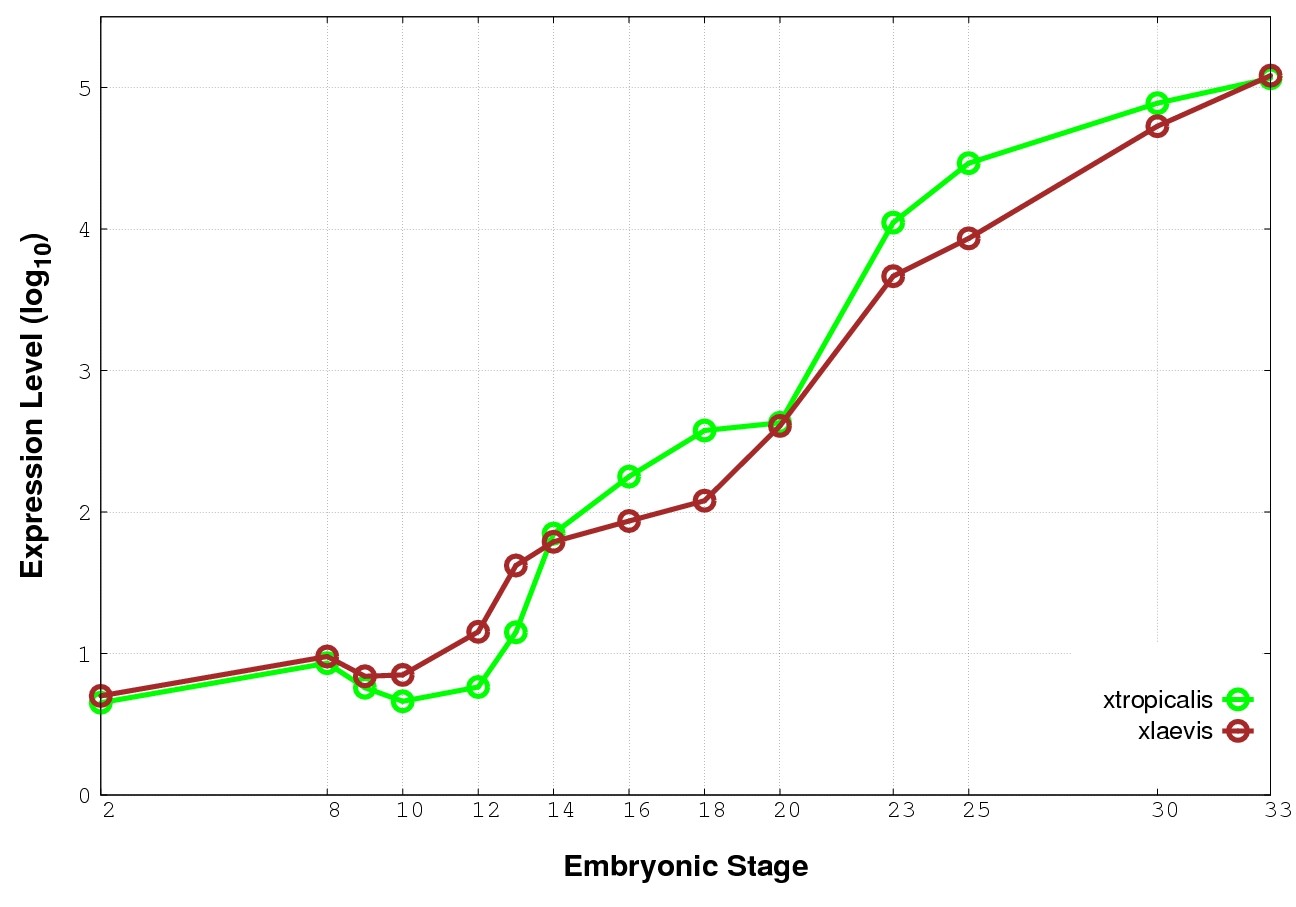 | RNA-Seq and EST Transcriptome profiles | ???displayGene.tropicalis??? | ???displayGene.laevis???.L | ???displayGene.laevis???.S |