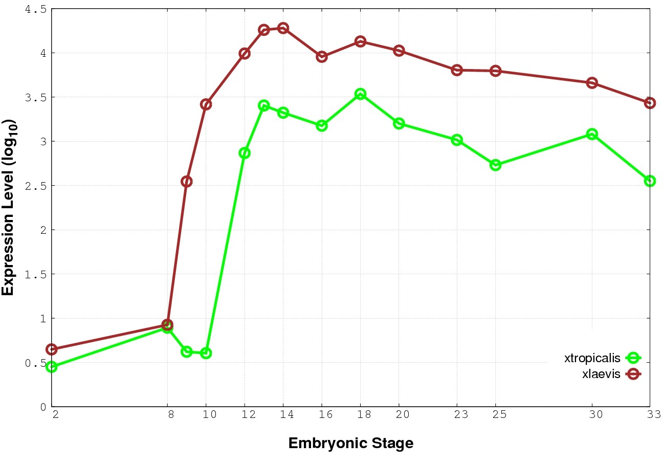 | RNA-Seq and EST Transcriptome profiles | ???displayGene.tropicalis??? | ???displayGene.laevis???.L | ???displayGene.laevis???.S |