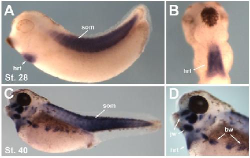 NF stage 28 Geach, et al. 2010 | NF stage 28 to NF stage 40 Geach, et al. 2010 | NF stage 43 Geach, et al. 2010 | NF stage 40 to NF stage 46 Geach, et al. 2010 |