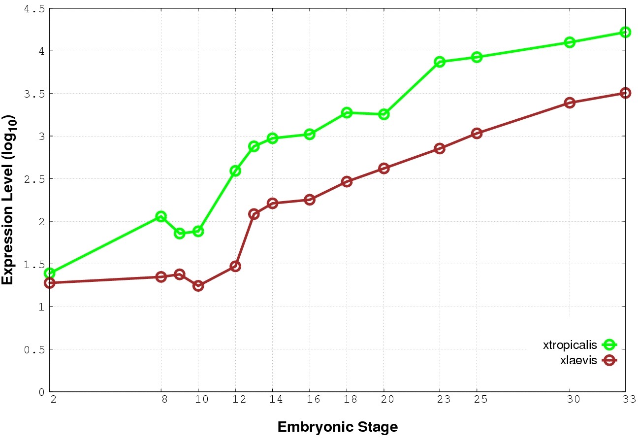 | RNA-Seq and EST Transcriptome profiles | ???displayGene.tropicalis??? | ???displayGene.laevis???.L | ???displayGene.laevis???.S |