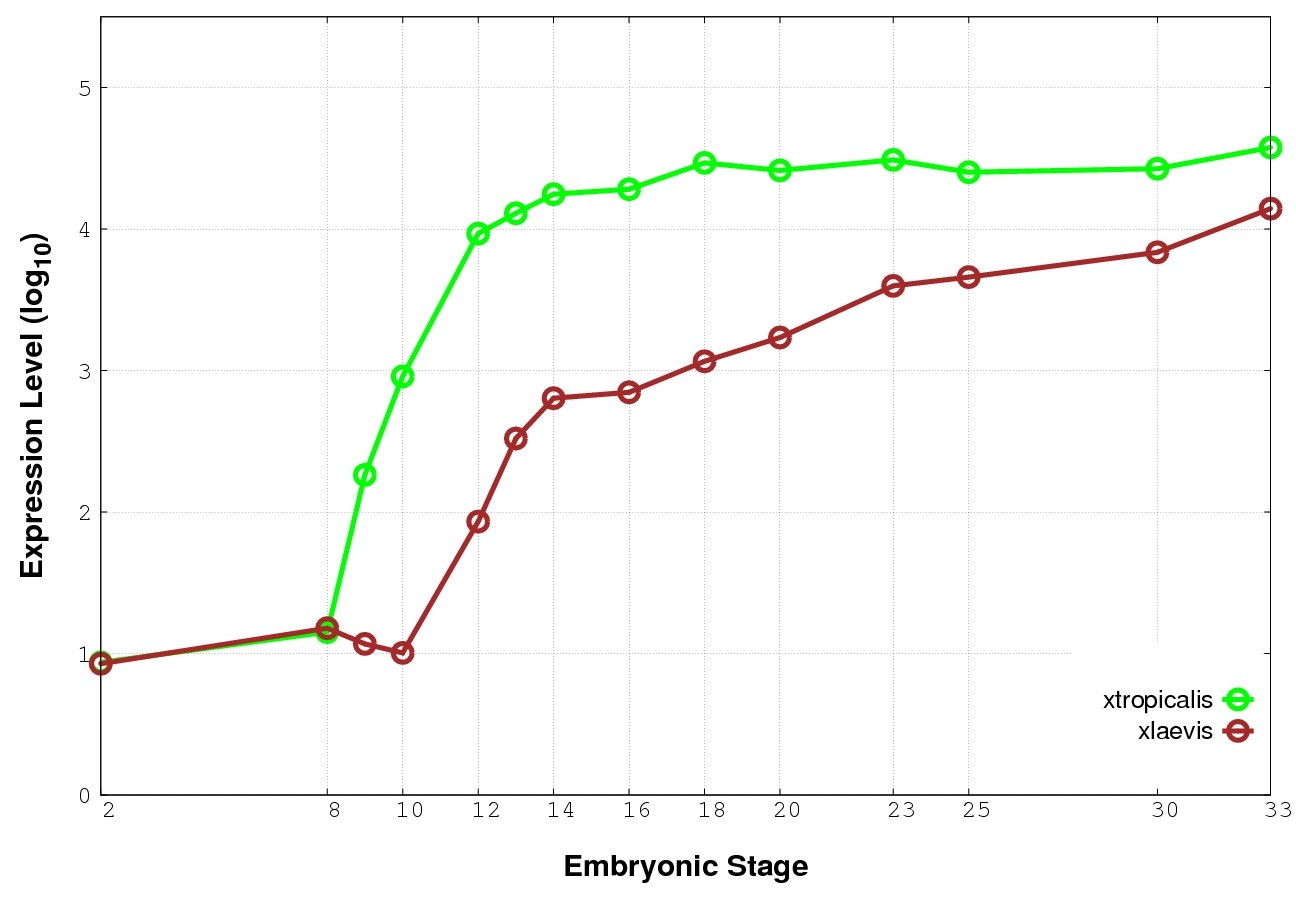 | RNA-Seq and EST Transcriptome profiles | ???displayGene.tropicalis??? | ???displayGene.laevis???.L | ???displayGene.laevis???.S |