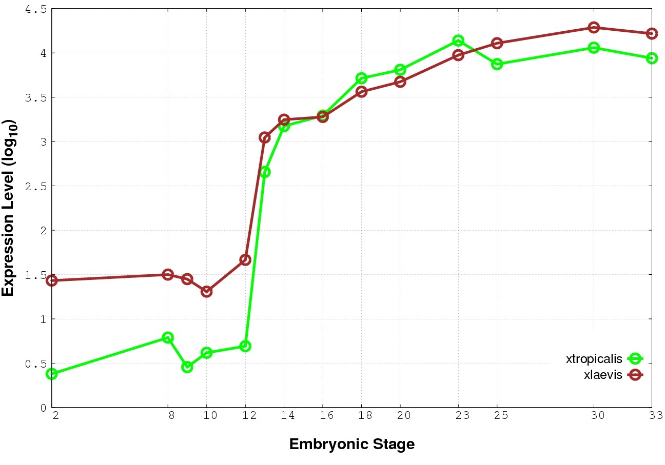 | RNA-Seq and EST Transcriptome profiles | ???displayGene.tropicalis??? | ???displayGene.laevis???.L | ???displayGene.laevis???.S |
