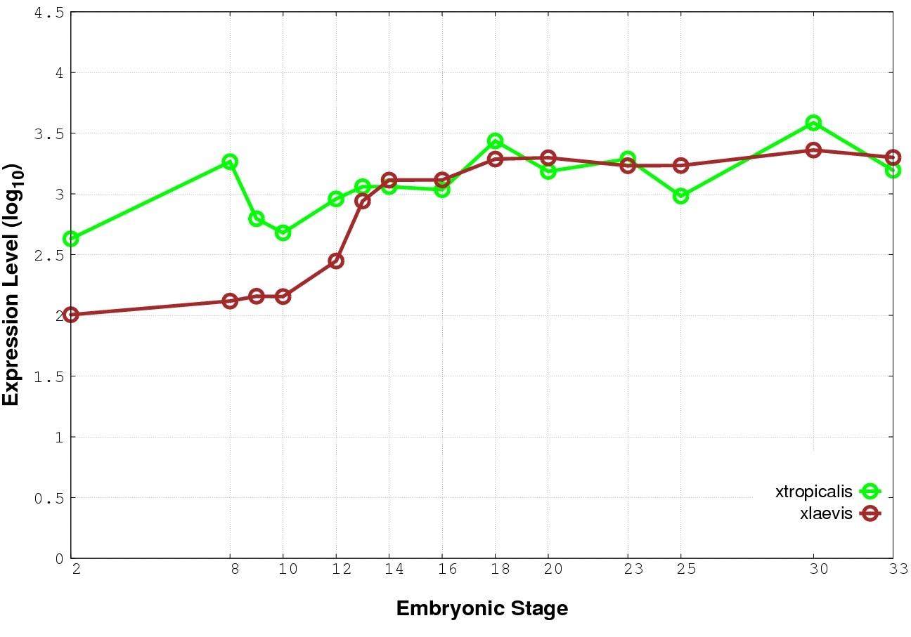 | RNA-Seq and EST Transcriptome profiles | ???displayGene.tropicalis??? | ???displayGene.laevis???.L | ???displayGene.laevis???.S |