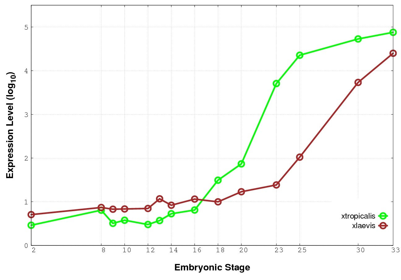 | RNA-Seq and EST Transcriptome profiles | ???displayGene.tropicalis??? | ???displayGene.laevis???.L | ???displayGene.laevis???.S |