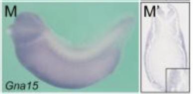 The gna15 gene encodes a g-protein alpha subunit involved in g-protein coupled receptor signaling pathways. The protein localizes to the plasma membrane. It is expressed in various tissues including th...[+]