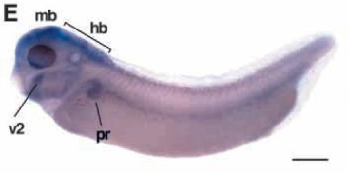 The ephb2 gene encodes a receptor tyrosine kinase protein localized to the cell membrane. This protein functions in axon guidance and pathfinding within the developing nervous system. It is involved in...[+]