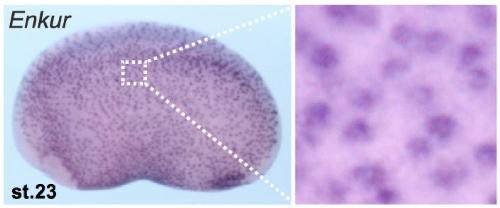 The enkur protein functions as a cation channel subunit localized to the sperm flagellum, where it is involved in regulating sperm motility and is necessary for fertilization; its expression is detecte...[+]