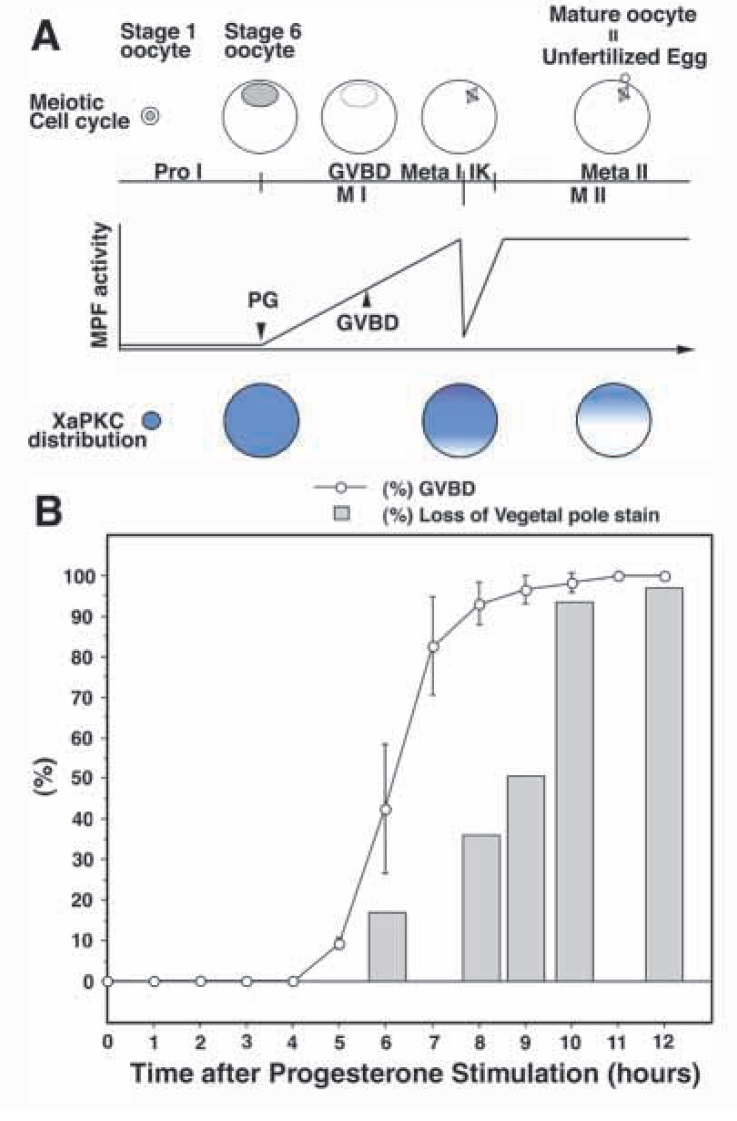 (B) Germinal vesicle breakdown and the redistribution of XaPKC