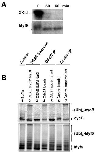 King, A 20S complex containing CDC27 and CDC16 catalyzes the mitosis-specific conjugation of ubiquitin to cyclin B. 1995, Pubmed , Xenbase