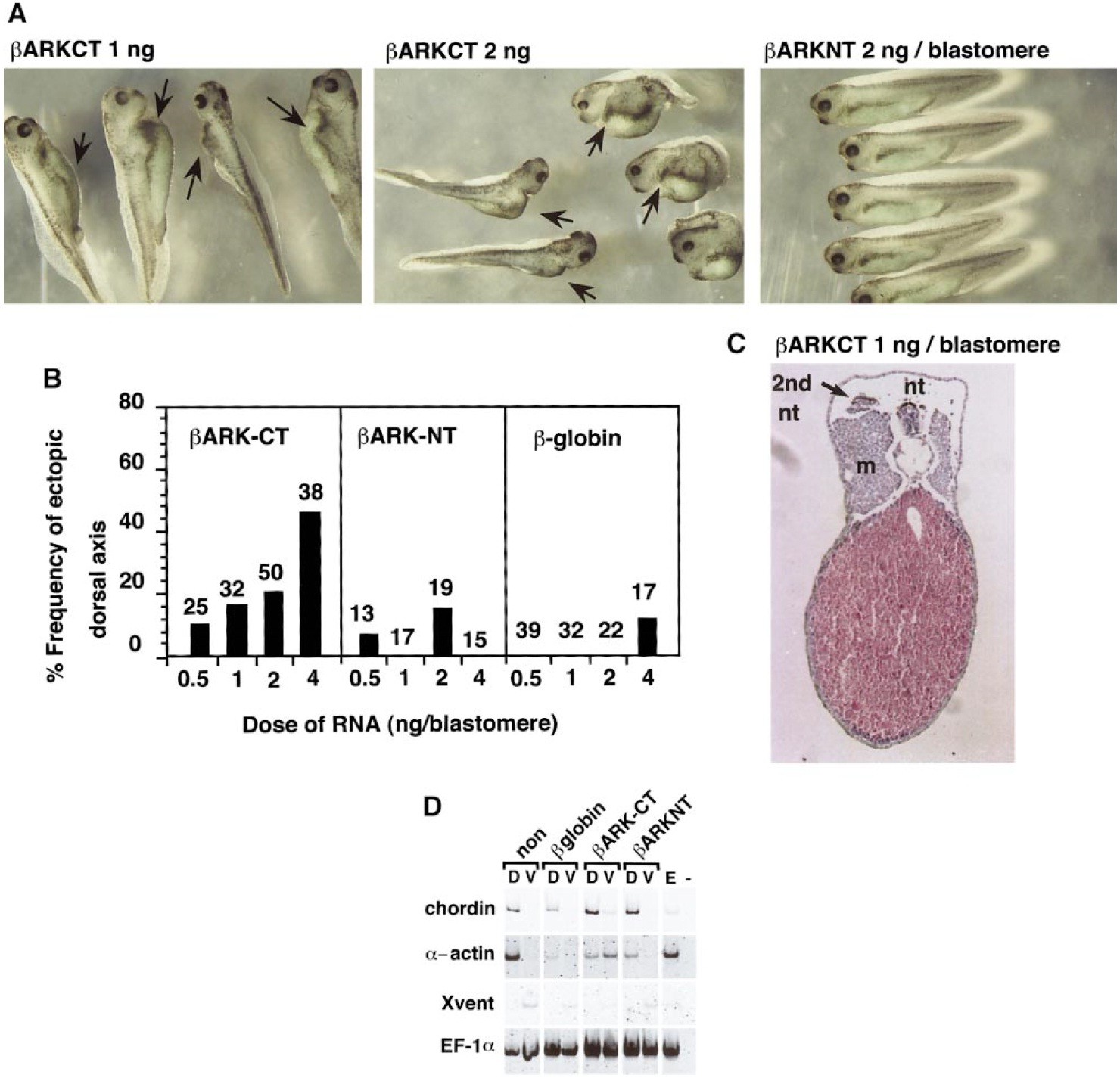 bARK-CT RNA. Arrow depicts an induced ectopic neural tube. (D) Injection of bARK-CT, but not bARKNT or b-globin, respecifies the
