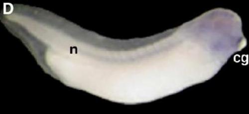 cant1(calcium activated nucleotidase 1) gene expression in Xenopus laevis embryo, assayed via in situ hybridization, NF stage 24, lateral view, anterior right, dorsal up. |