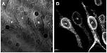 Confocal images of XAPY-MT expressing HEK cells. (A) Brightfield and (B) fluorescent images. The Myc epitope was detected using the 9E10 monoclonal antibody and fluorescein conjugated second antibody. The fluorescent image shows strong perinuclear staining and uneven cytoplasmic staining of XAPY-MT, indicative of localization to the endoplasmic reticulum. The nuclei (n) of three XAPY-MT expressing cells are indicated. |