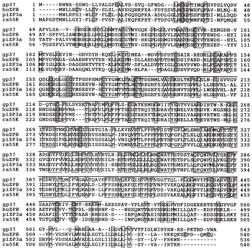 Fig. 1. Nucleotide sequence of gp37 cDNA and its deduced