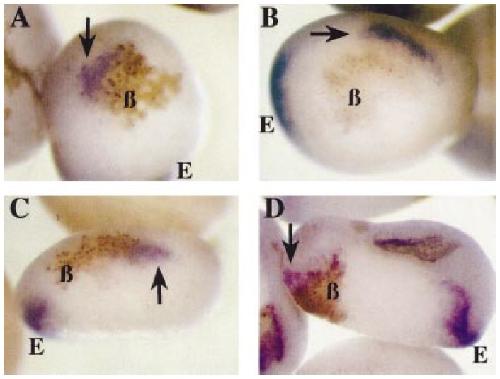 the embryo (b) induces goosecoid (arrow) in the overlaying cells