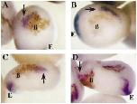 vesicle (ov), and pronephros (P) of tailbud-stage embryos. (E)