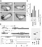 DNA/protein interactions. A,gel mobility shifts were performed with the bacterially expressed Xvent-2 homeodomain (HD) on the +1738/+1969 intron target sequence. 1, lane 1 contains free DNA;lanes 2–4 contain increasing amounts (6.25, 12.5, and 25 ng) of Xvent-2 HD. 2, addition of increasing amounts of unlabeled target sequence (specific inhibitor) leads to a loss of shift of the labeled target. 3, addition of an unspecific competitor (−69/+54 DNA fragment) does not prevent shifting.B, DNase I footprint of Xvent-2 HD was carried out for both strands on the +1738/+1969 intron 2 fragment. Lane 1 shows the A/G chemical sequencing reaction, lane 2 contains DNase I-digested free DNA. Increasing amounts (25, 75, and 225 ng) of Xvent-2 HD were added prior to DNase I digestion in lanes 3–5. Protected regions (indicated by lines) correspond for both strands and contain two copies of the motif 5′-CTAATT-3′ (underlined). Gene sequence is shown from nucleotide positions +1820 to + 1879. C, best fit alignment of theX. laevis Xvent-2-binding site with the human and mouseBMP-4 gene (number of matches: 13; allowed mismatches: 1). Note that a 13-bp match (including one T to C transition) is found within the proximal promoter of both the human (accession numberU43842) and the mouse BMP-4 genes (accession numberL47480). |