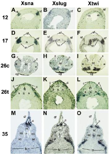 FIG. 2. In situ hybridization in serial sections for Xsnail, Xslug, and