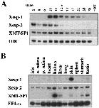 The mRNA expression patterns of Xesp-1, Xesp-2, and XMT-SP1 in embryonic development (A) and adult tissues (B) analyzed by RT–PCR. ODC and EF1-α were used as internal controls.