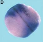 Fig. 2. Whole-mount in situ hybridization analyzes of Xpontin (AâI) and Xreptin (JâQ). (A) Xpontin expression at stage 6. (B) Xpontin expression at stage 10. (C) Section of a stage 11 embryo showing Xpontin expression in the ectoderm and the involuted mesoderm. (D) At neurula stage Xpontin is expressed in the anteriorneuroectoderm. (E) Expression of Xpontin at stage 26 in neural crest cells. (F) Staining pattern in the head of a stage 30 embryo. (G) At stage 43 Xpontin transcripts are predominantly found in esophagus (o) and proctodeum (p). (H) Section of a stage 43 embryo showing expression in the gills (g) and the esophagus (o). (I) Staining of Xpontin transcripts in isolated gastrointestinal tract of stage 48 embryo is visible in the gall bladder (gb). (J) Xreptin expression at stage 6. (K) Section of a stage 9 embryo showing Xreptin expression in the animal cap, and (L) at stage 10. (M) Expression of Xreptin in premigratory neural crest cells at stage 15. (N) Expression of Xreptin in cephalic neural crest cells at stage 26, and (O) at stage 35. Arrows 1 and 2 in (O) indicate prominent staining in the adrenal medulla (1) and in an unknown structure (2). (P) Close up of (O). Levels of sections shown in (Q,R) are given. (Q,R) Transverse sections of a stage 35 embryo. The arrow head in (Q) indicates the pronephric tubulus which is not stained, and the arrow marks staining in the adrenomedullary cells.