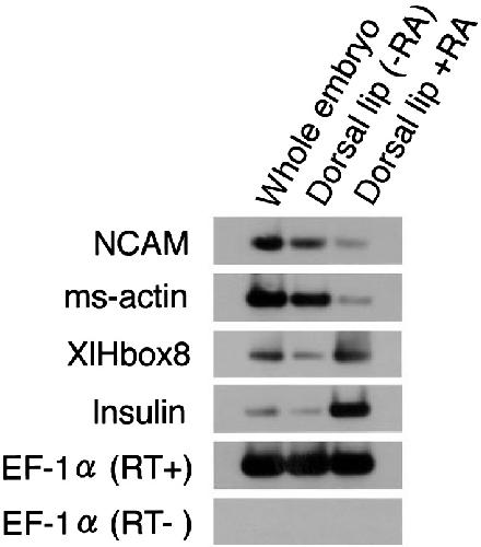 (muscle-specific actin, ms-actin), XlHbox8, insulin and EF-1a