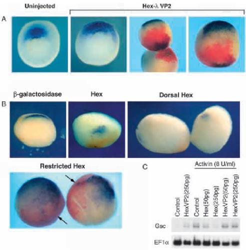 by Hex. (A) Injections of RNA encoding Hex-lVP2 induces ectopic